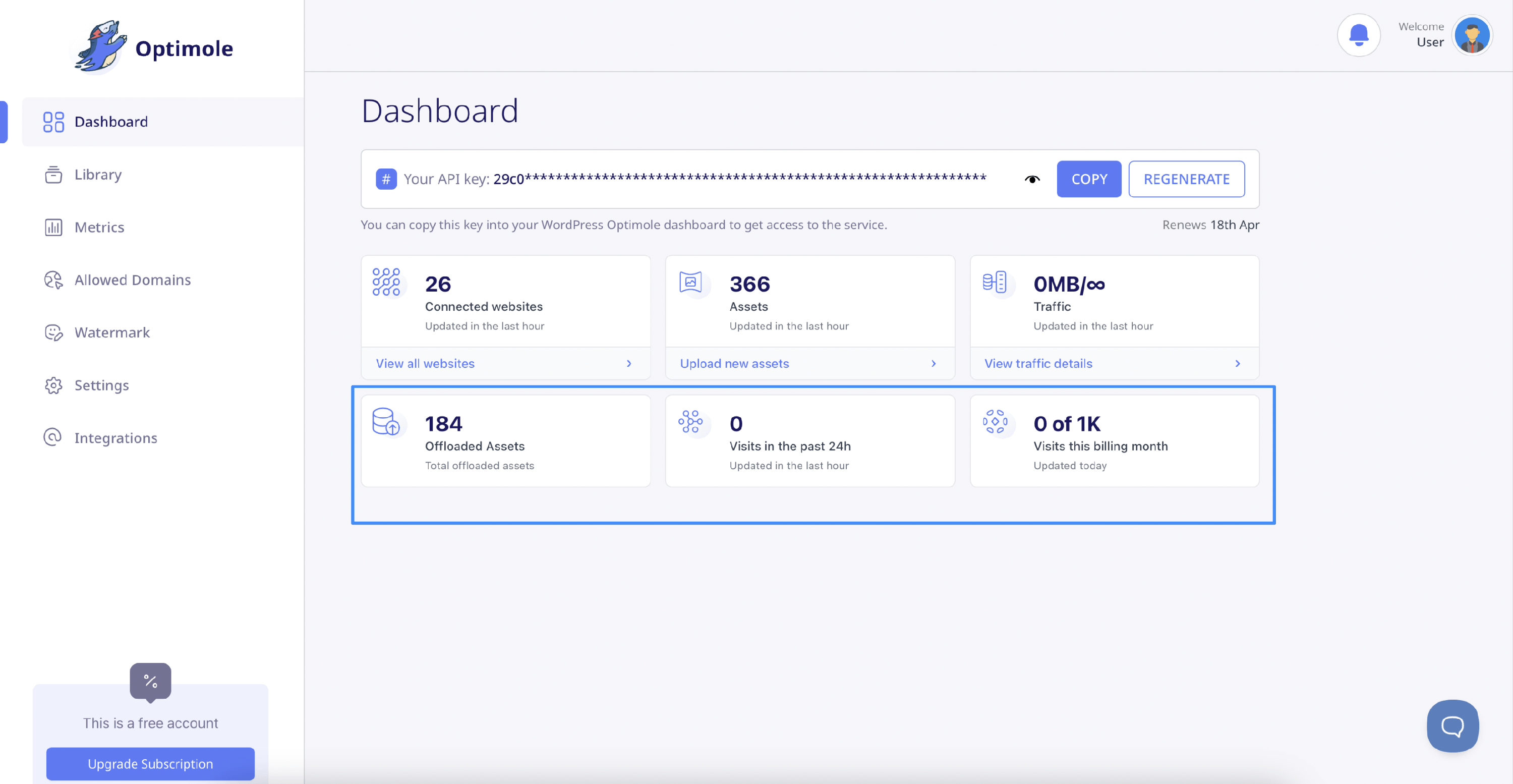 - Es ist klar und stimmt mit den anderen von Ihnen verfolgten Analysen überein. Mithilfe der Optimole-Nutzungsstatistiken verfolgen wir die Anzahl der Website-Besucher, was Ihnen helfen kann, Ihre Nutzung als Teil Ihres gesamten Website-Trackings zu überwachen.