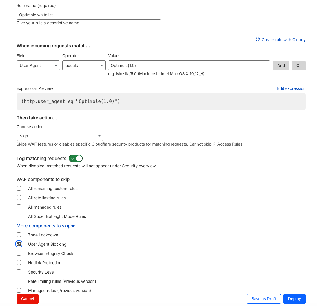 How to whitelist Optimole user agent on cloudflare?