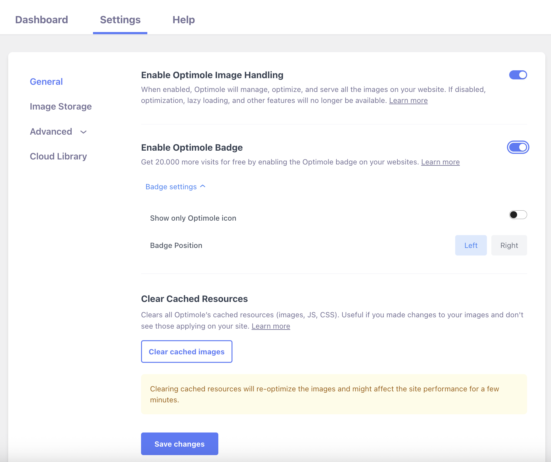 Once the Optimole badge is enabled, you’ll see several customization options:
