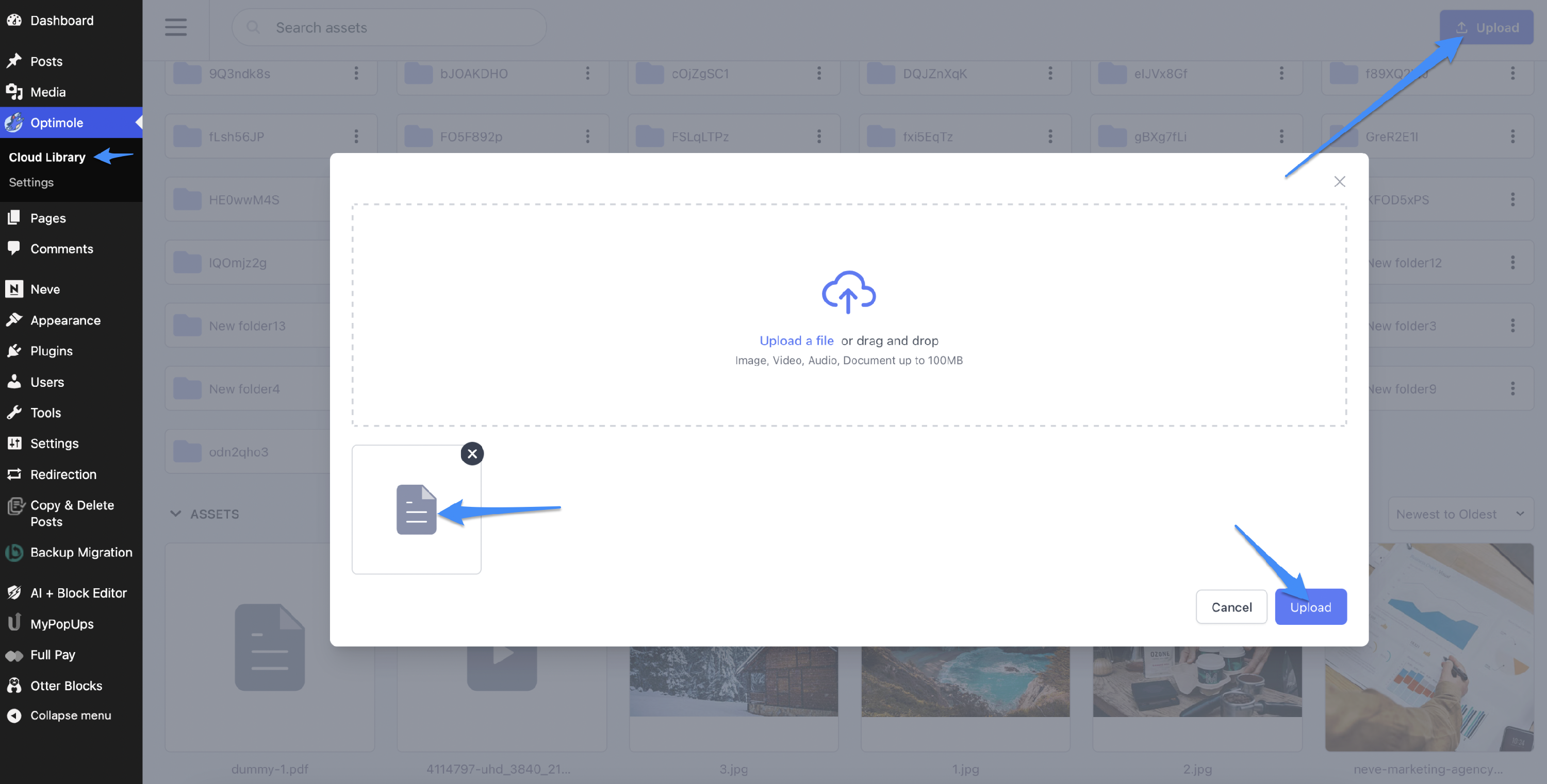 - β You can upload PDFs to Optimole cloud via the dashboard.