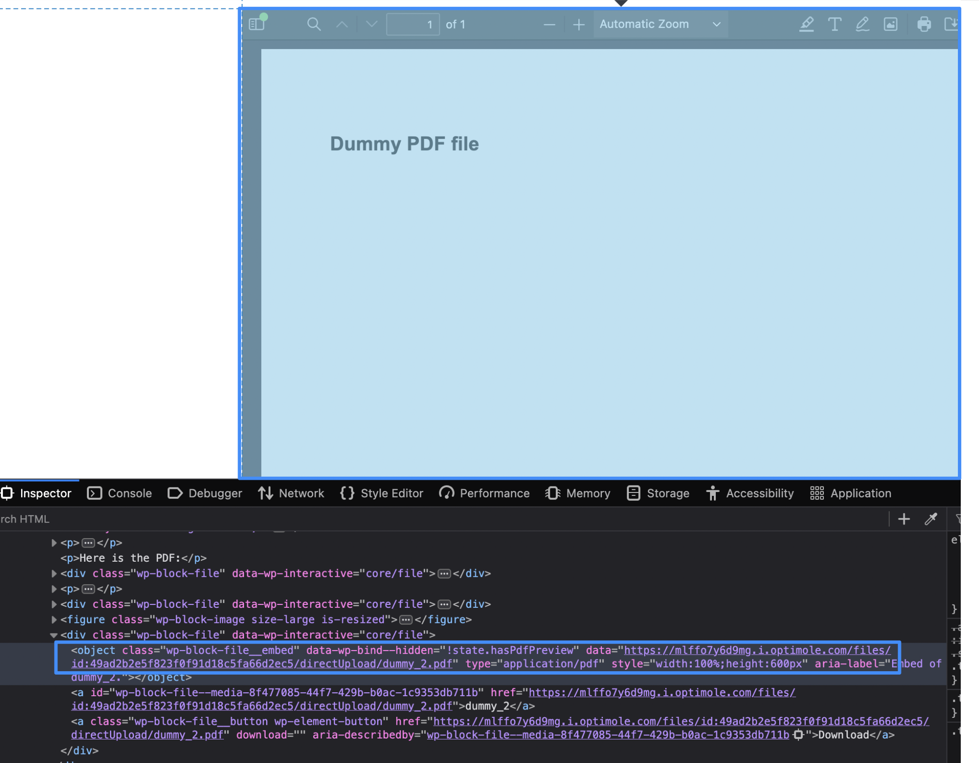 - π The plugin replacer does not support replacing URLs of PDF files embedded in your content. This means that if you have some PDF added in your content of the pages, it will remain as it is, if you want the file to be served from Optimole's CDN, you should upload the file to the cloud and use the that uploaded file.