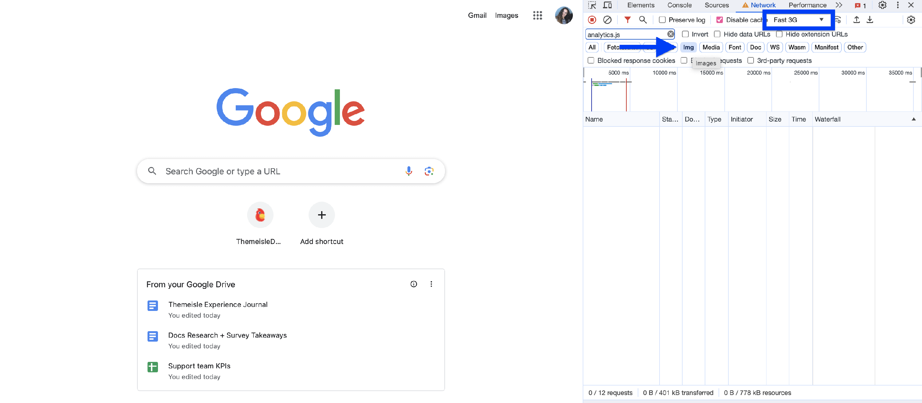 3 Select the Network Tab and then select the Img filter.