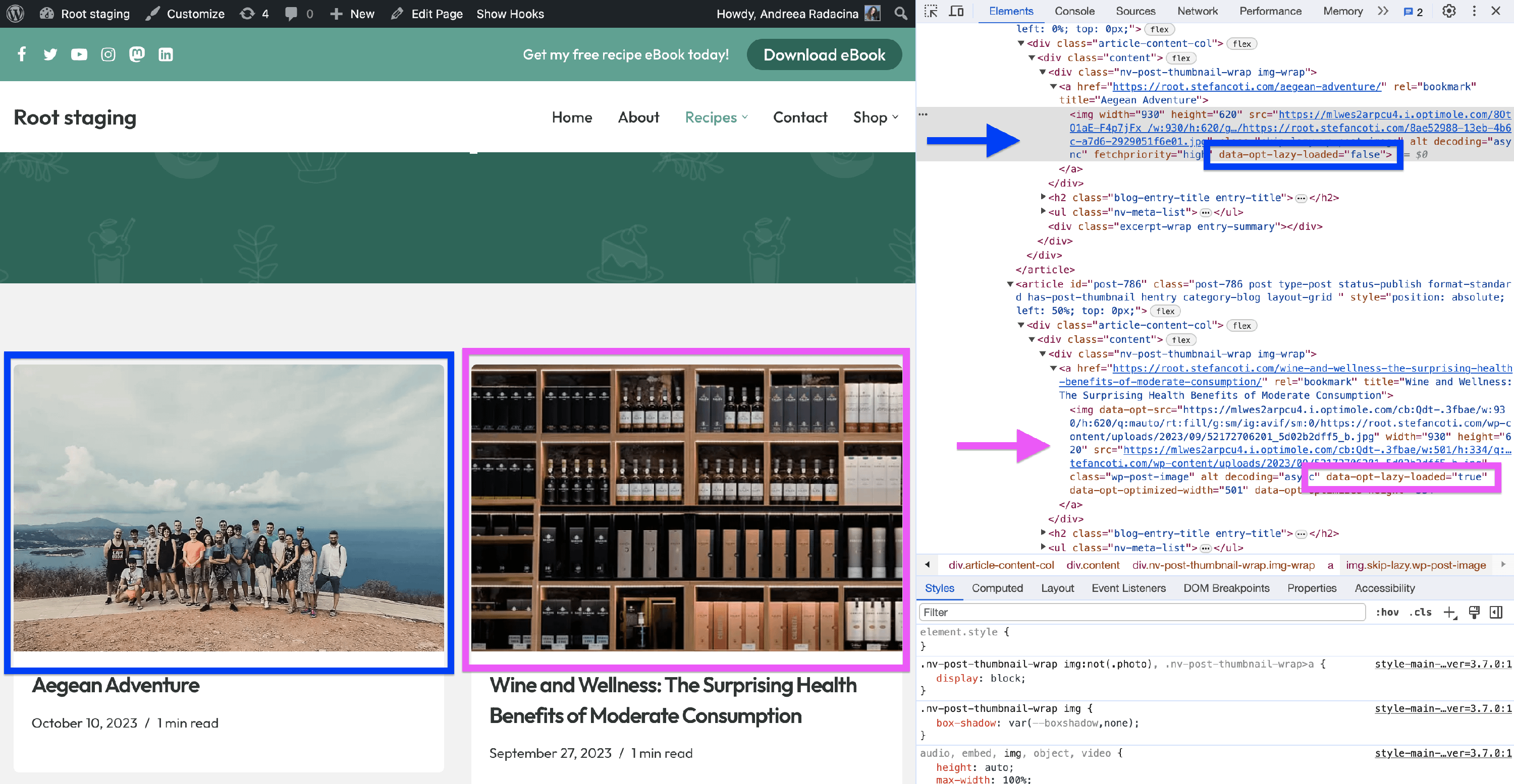 To confirm that lazy loading is skipped for specific images, right-click and inspect the image element in your browser’s DevTools. Look for the attribute data-opt-lazy-loaded —if it is set to false , the image is not being lazy-loaded.