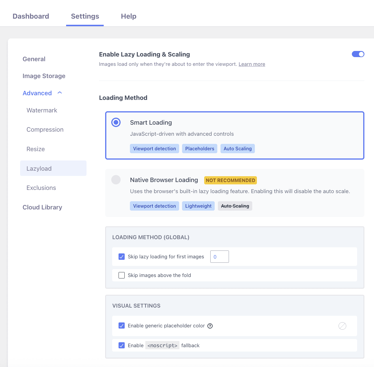 3 Select the desired option of how images should be lazy-loaded