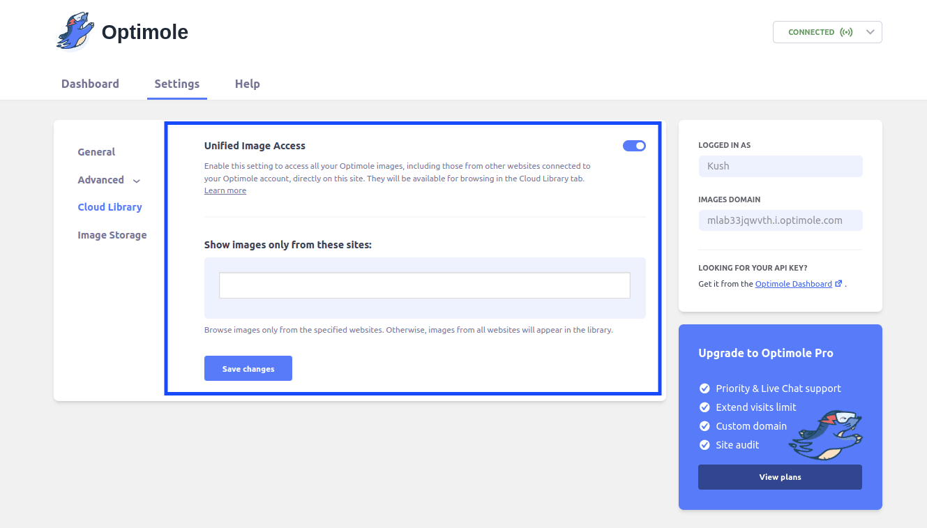 Once you enable the Cloud Library Browsing and click on Save changes, a new panel inside the Optimole panel, called Cloud Library (View