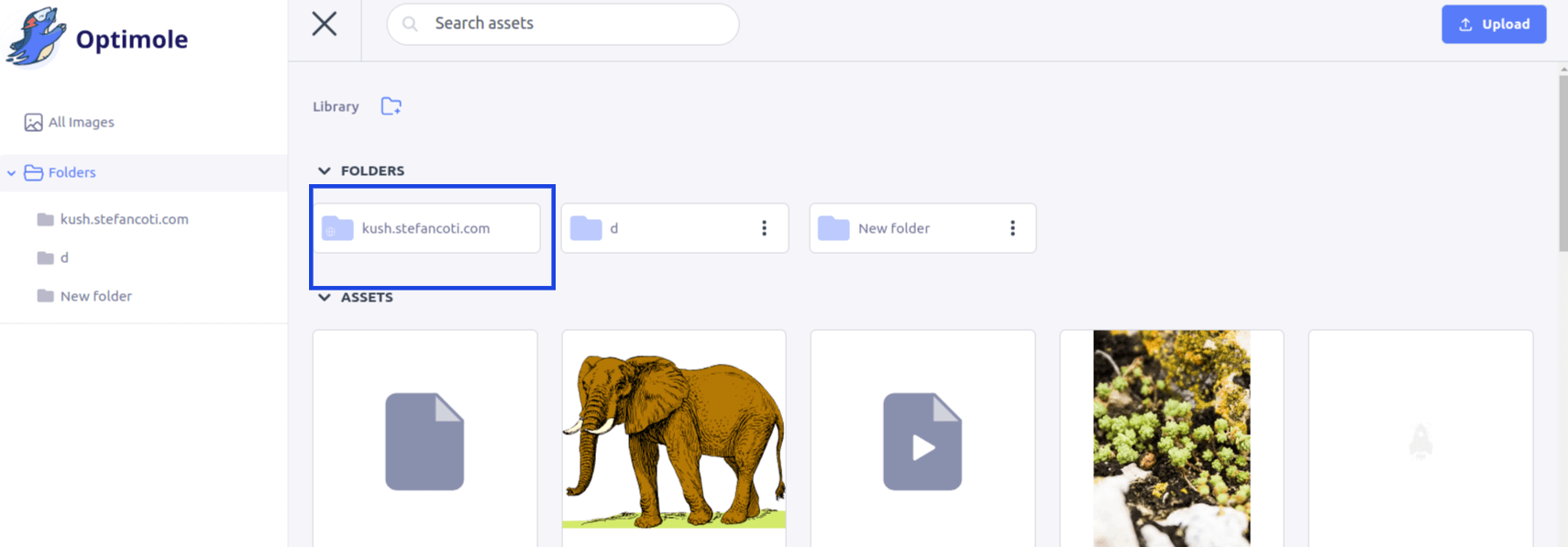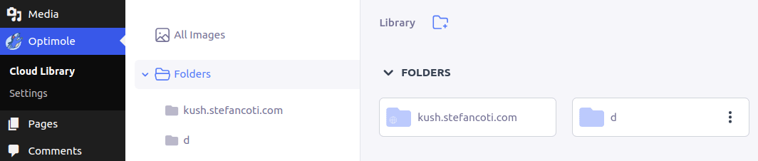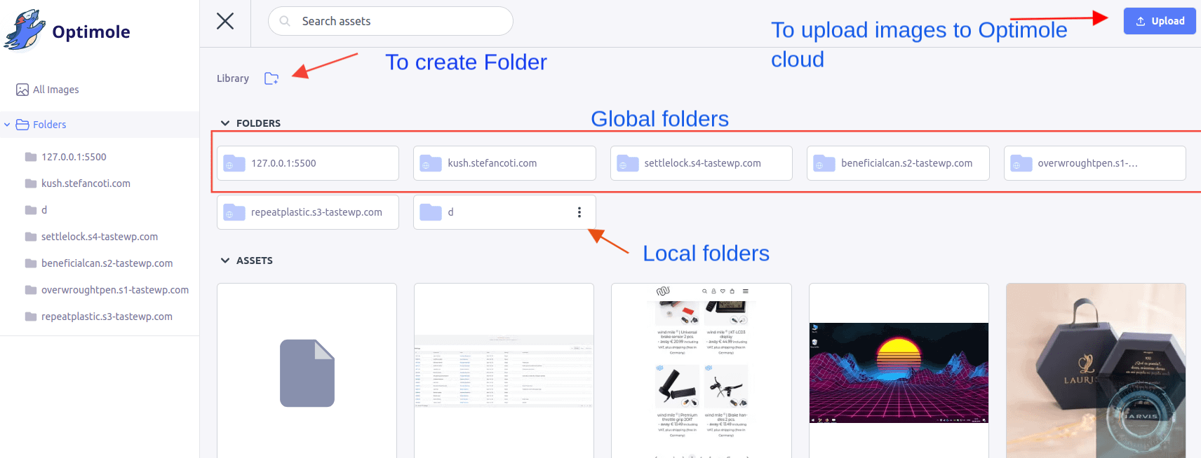 From this place, you can access both global folders (with images from other websites where you use the same Optimole API key) and local folders (the one you create from WordPress Dashboard or Optimole Cloud).