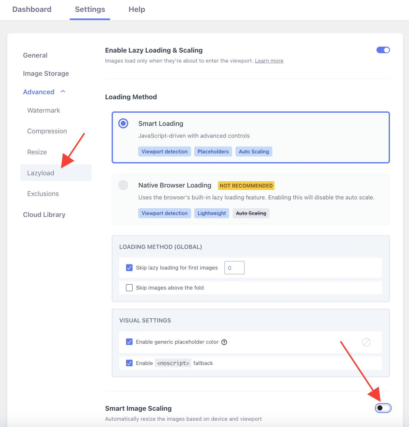 You can disable scaling images and keep lazy loading.