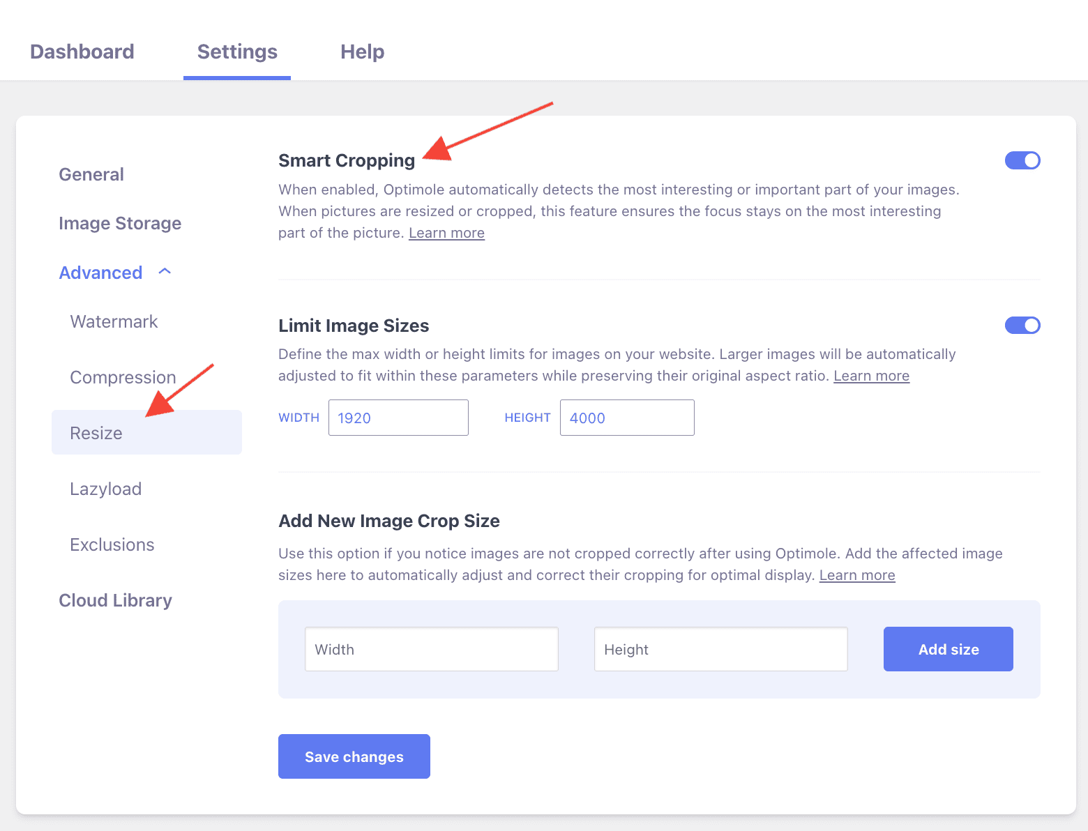 3 Use the toggle to enable Smart Cropping.