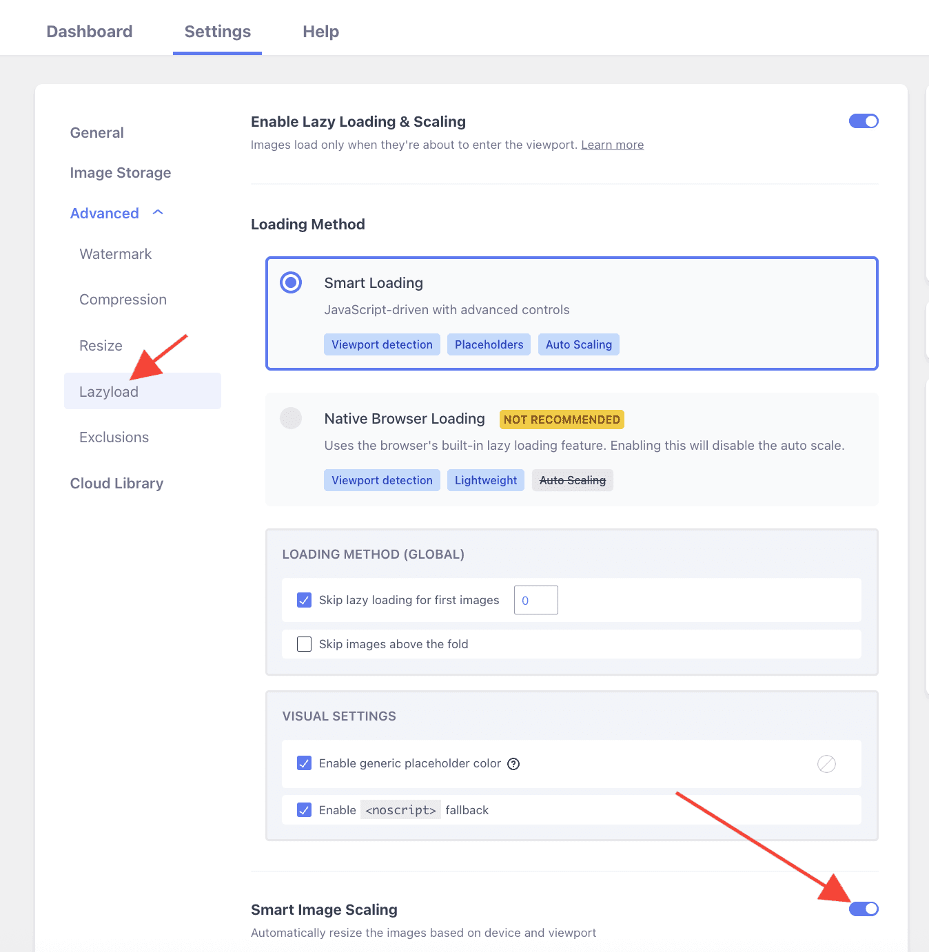 3 Use the toggle to enable the Smart Image Scaling feature.